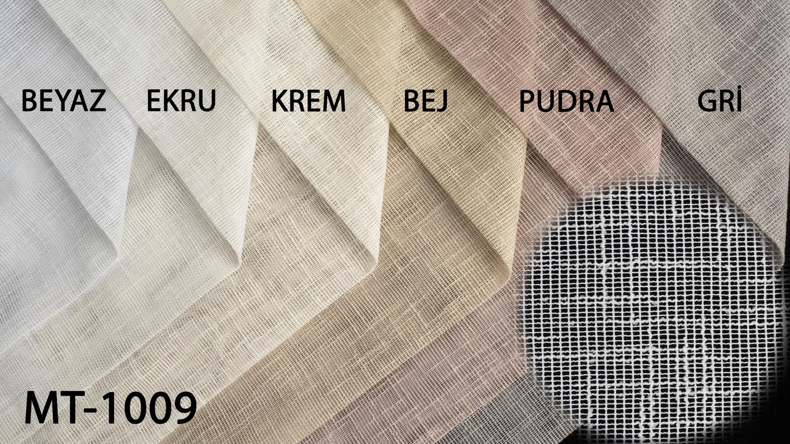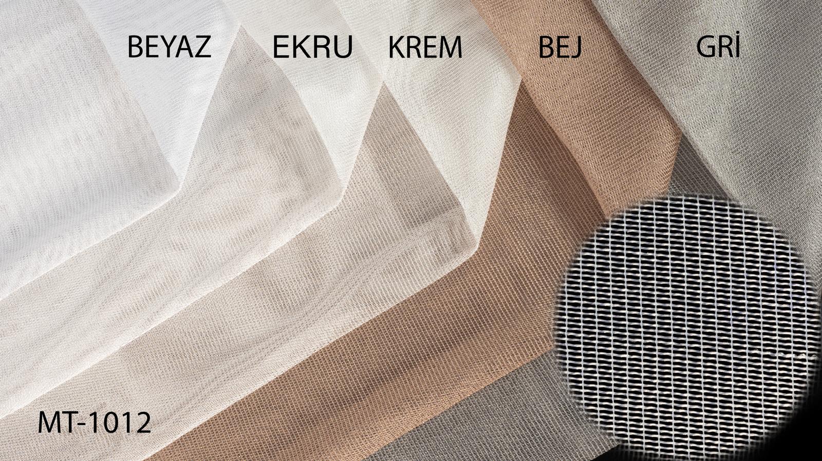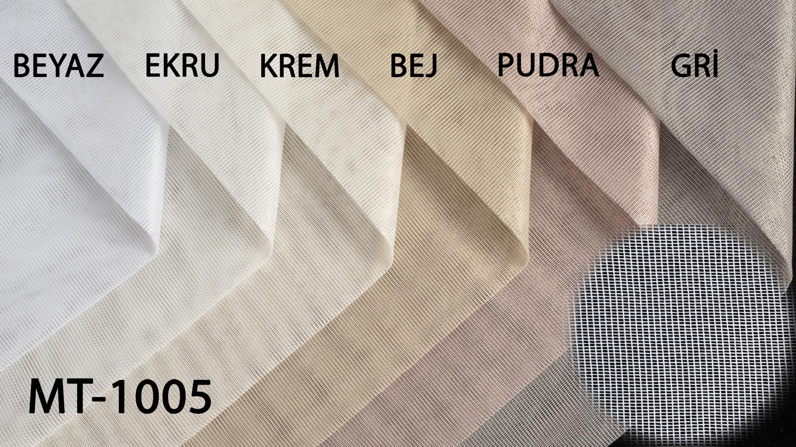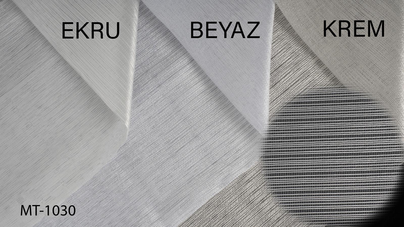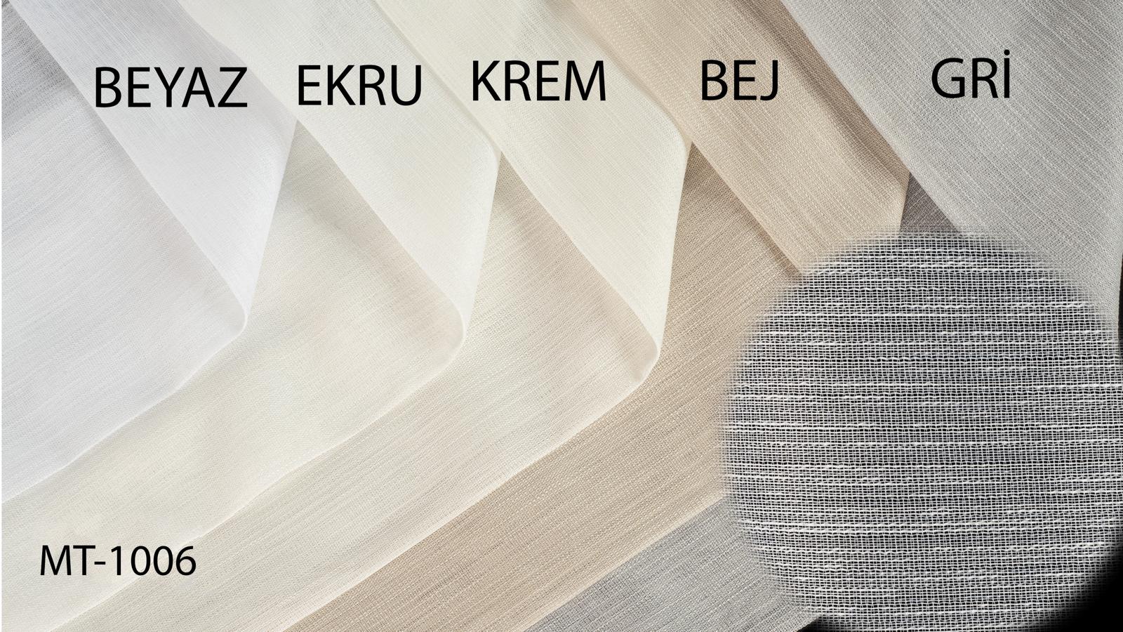 Beyaz, ekru, krem, bej ve gri tonlarıyla hafif dokulu tül kumaş. Ferah bir görünüm sağlar.