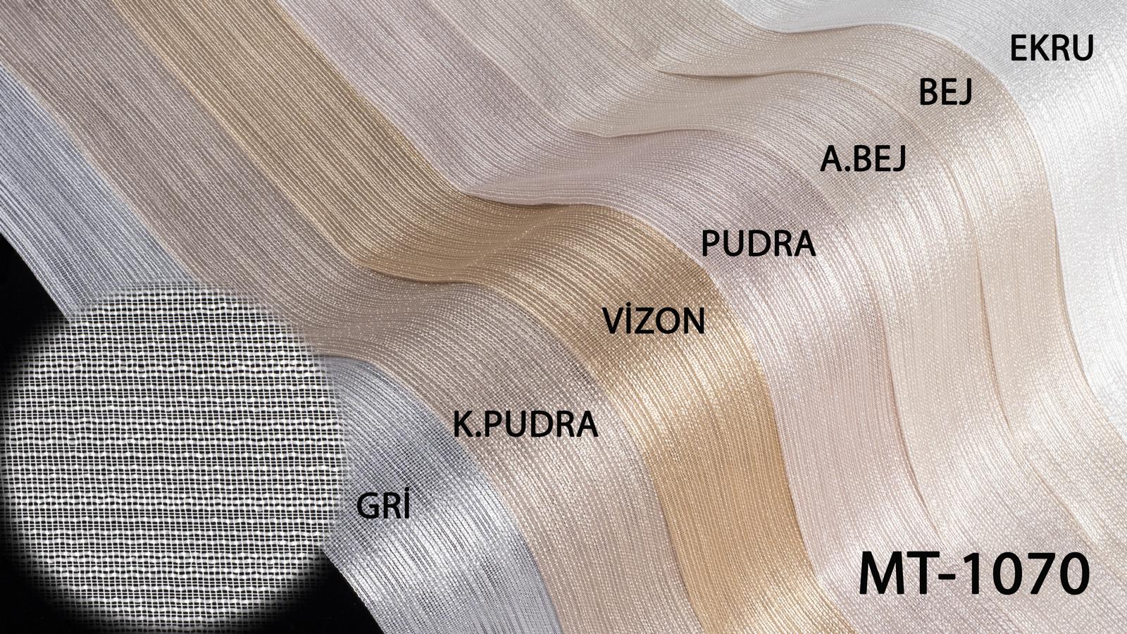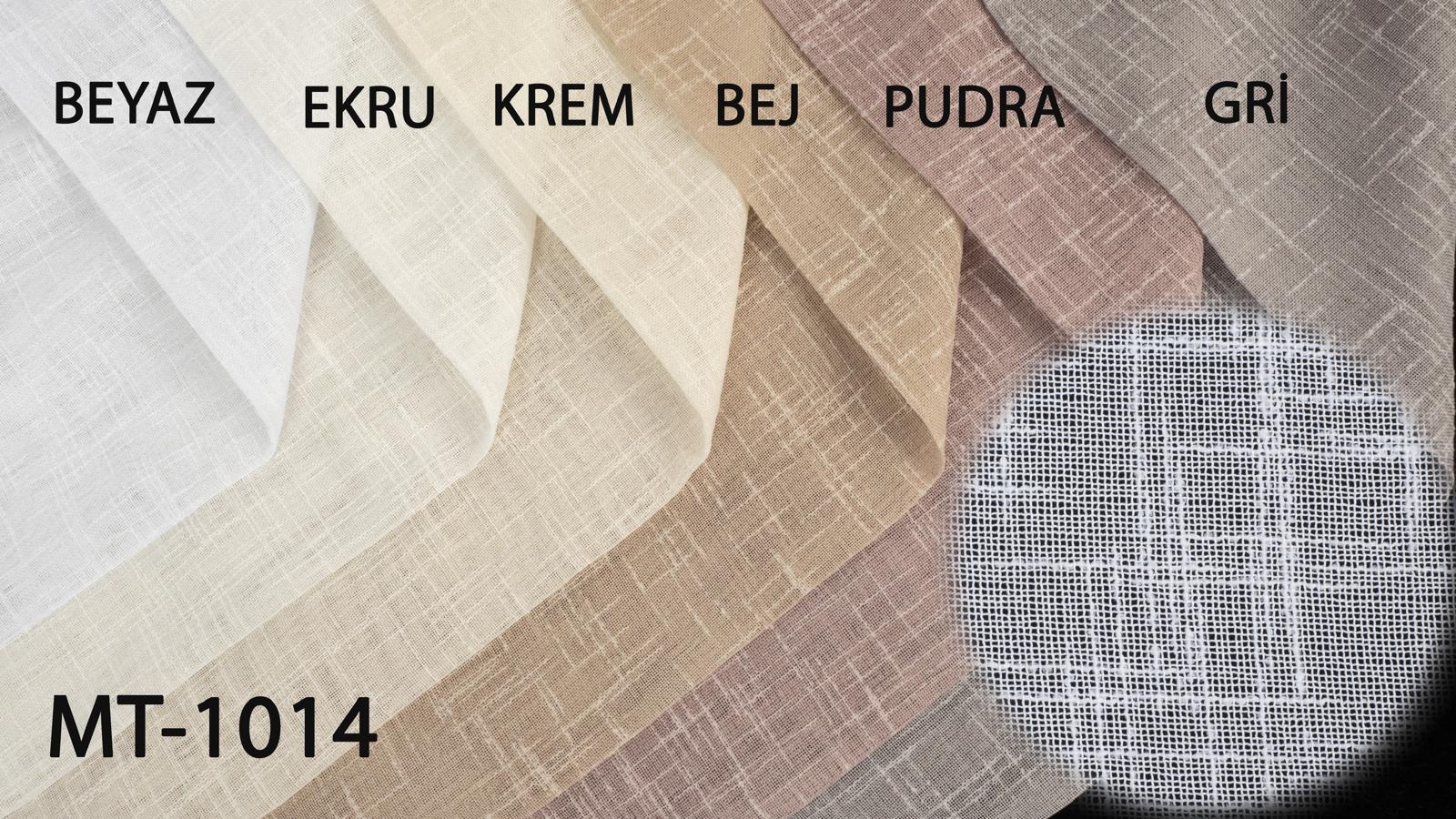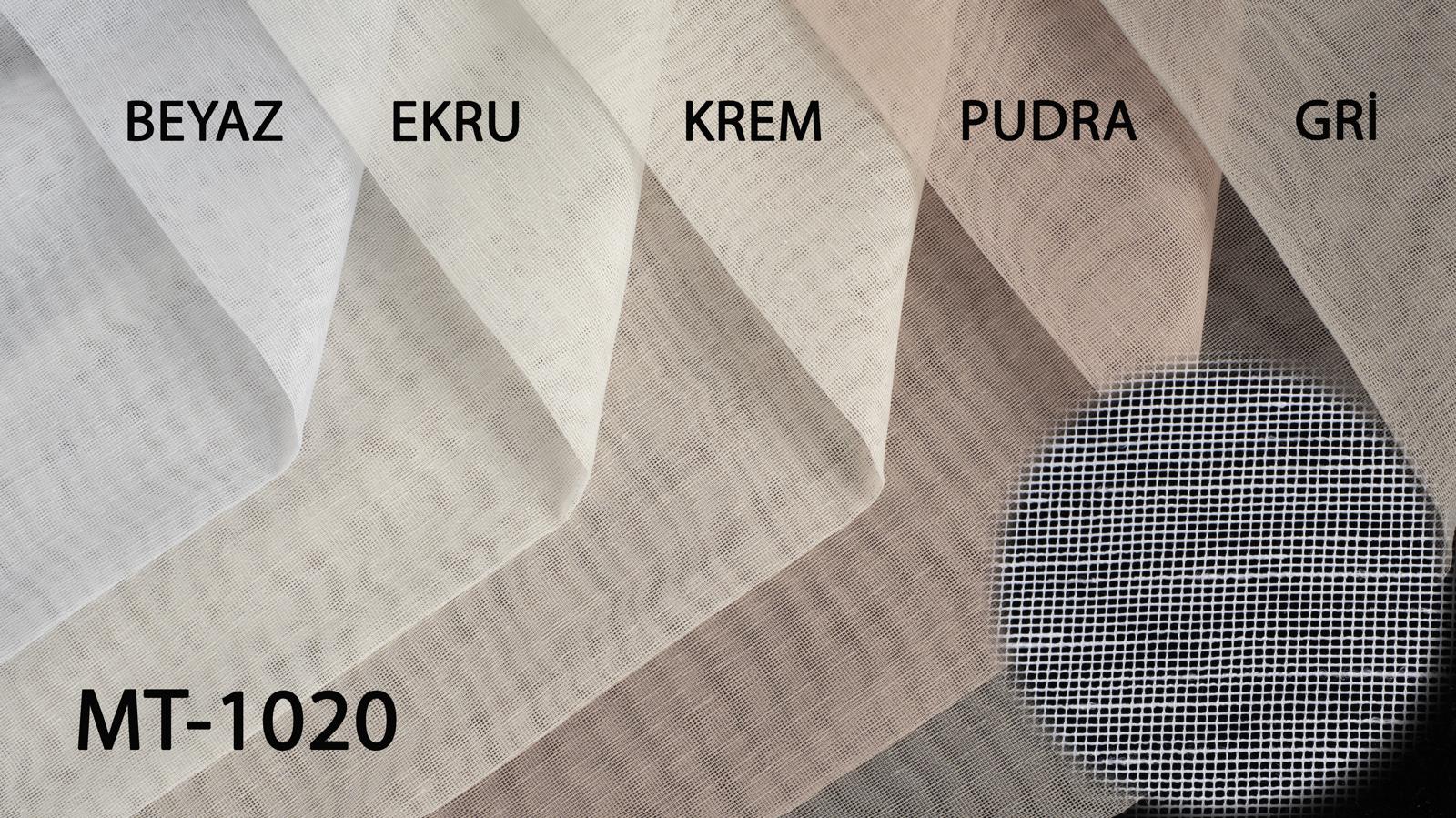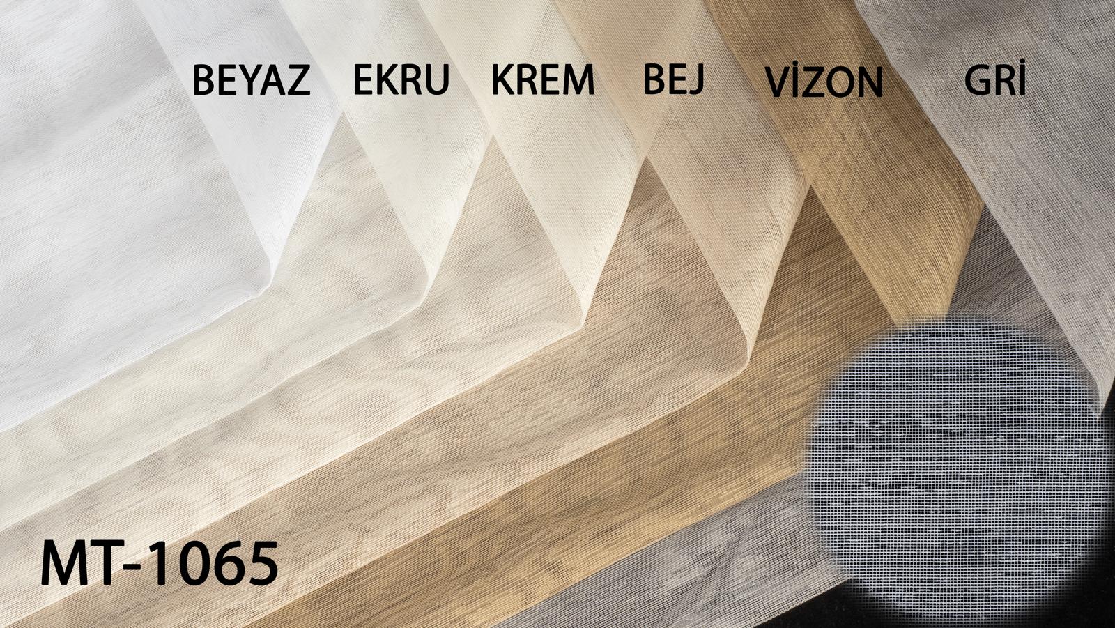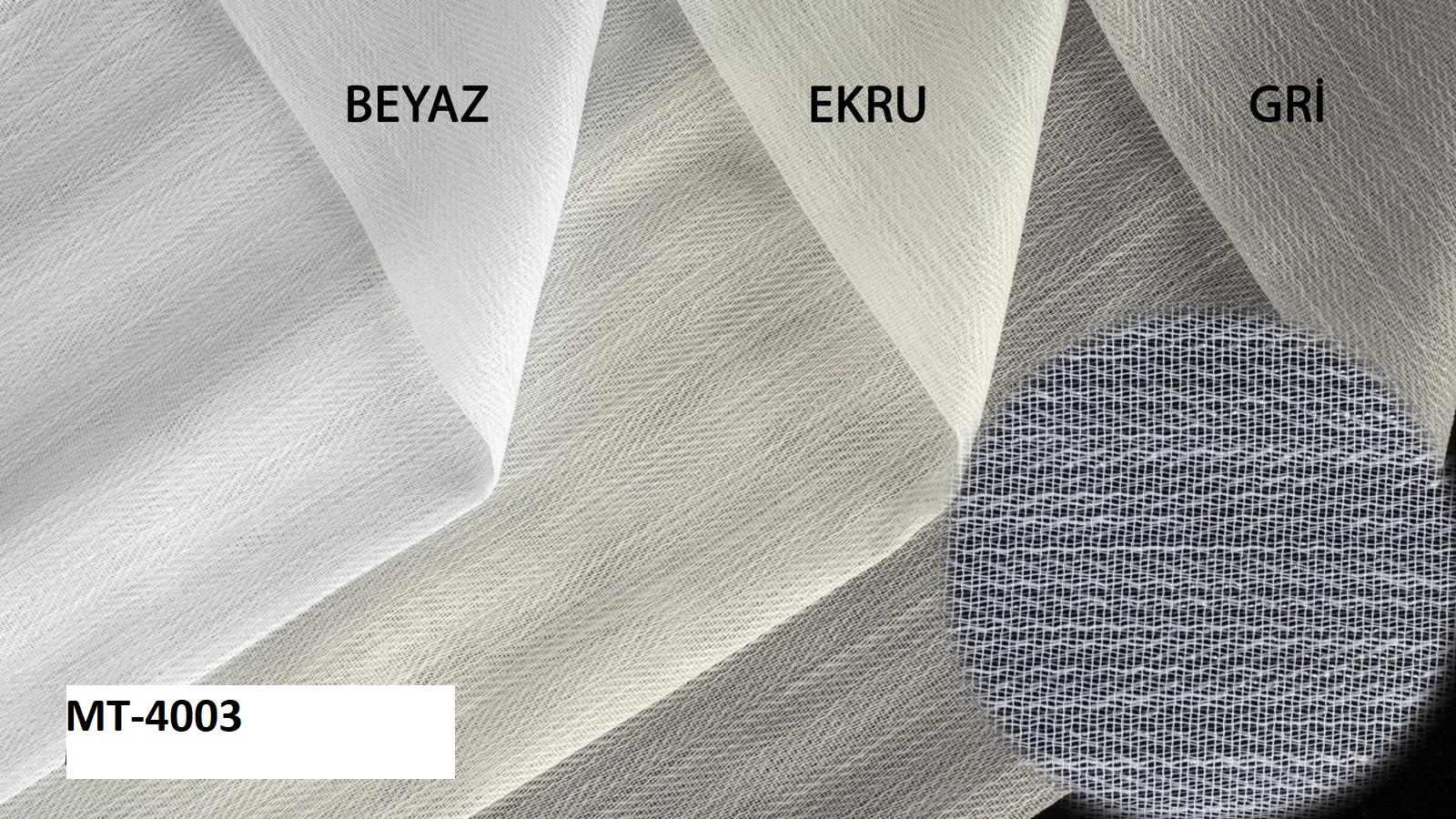 Beyaz, ekru, krem, bej ve gri tonlarıyla hafif dokulu tül kumaş. Ferah bir görünüm sağlar.