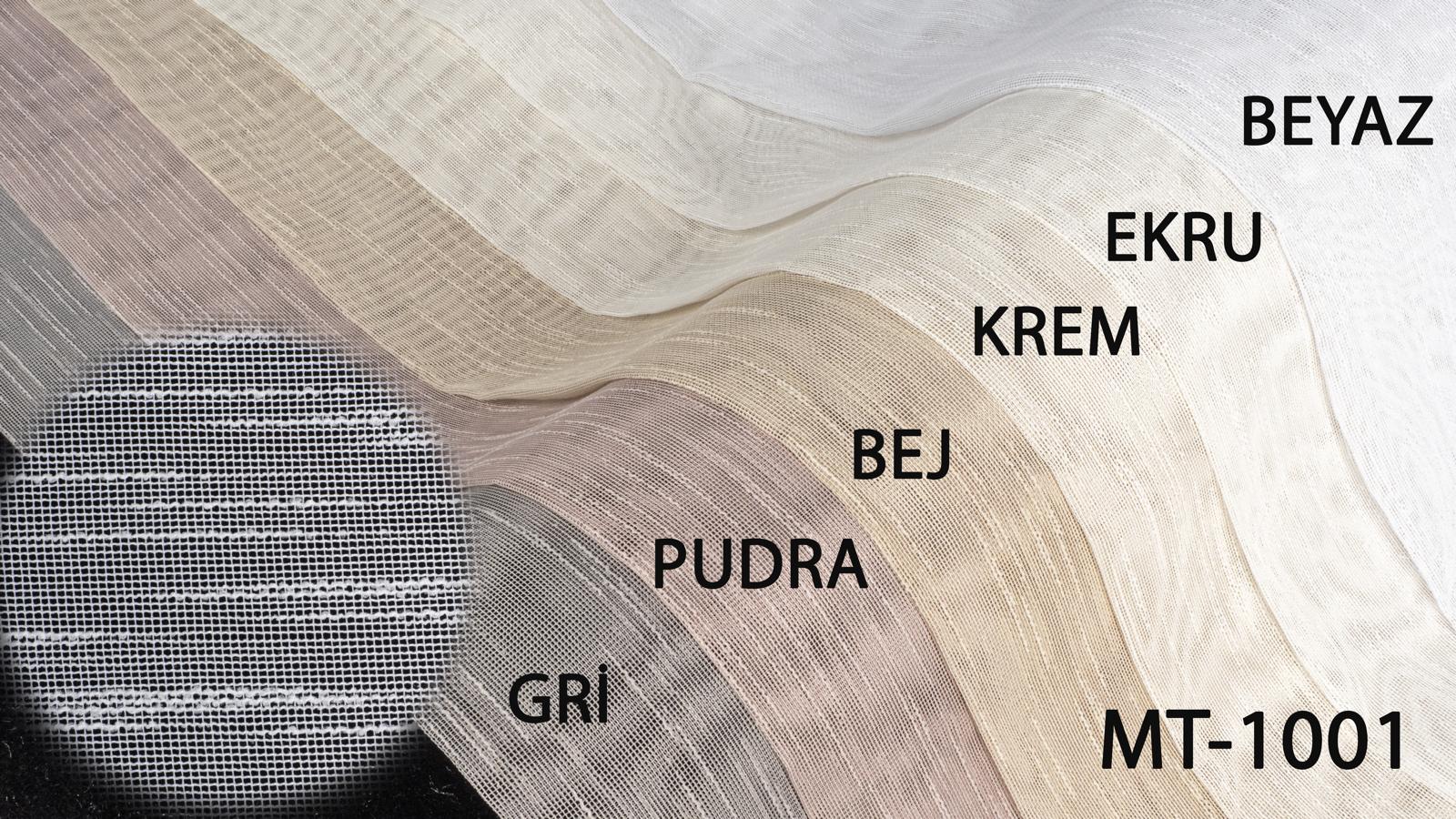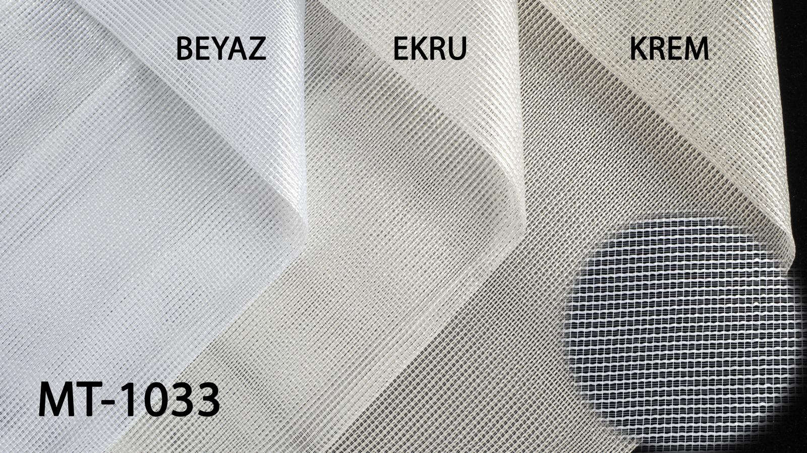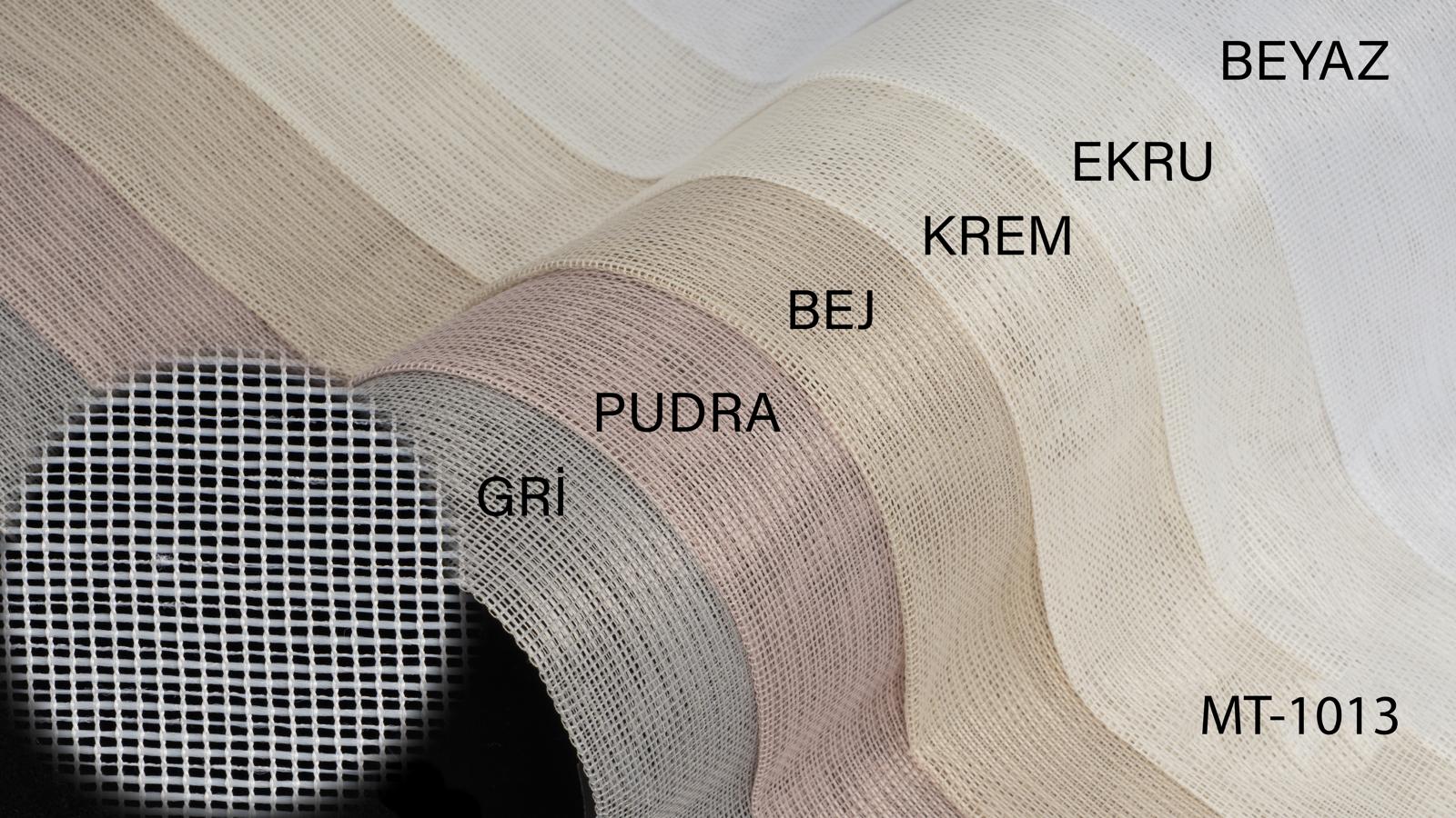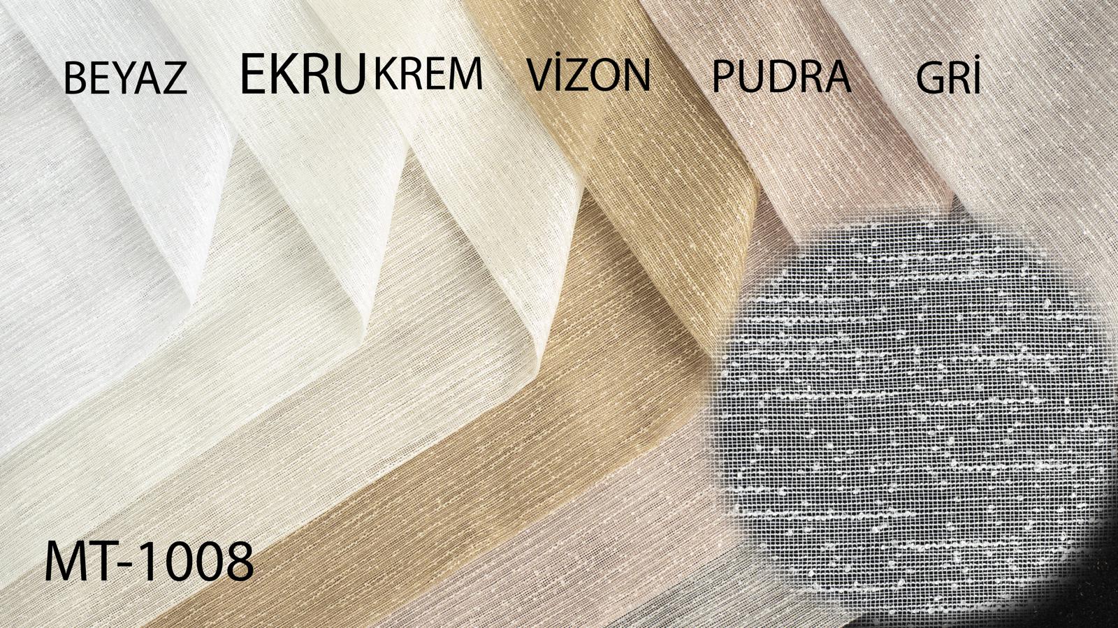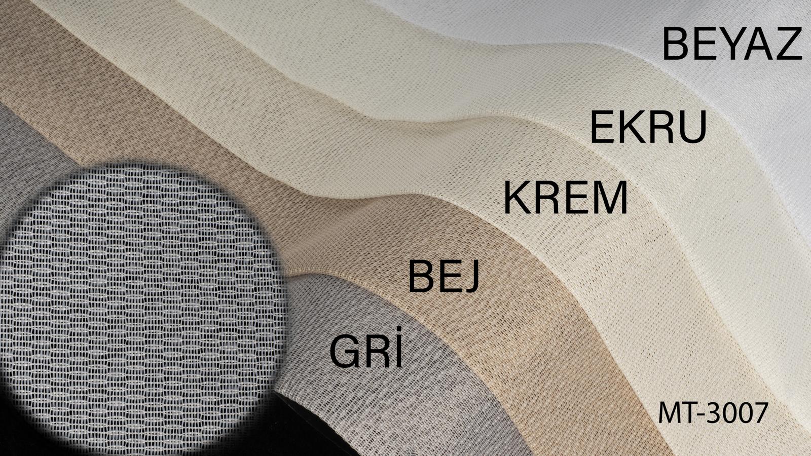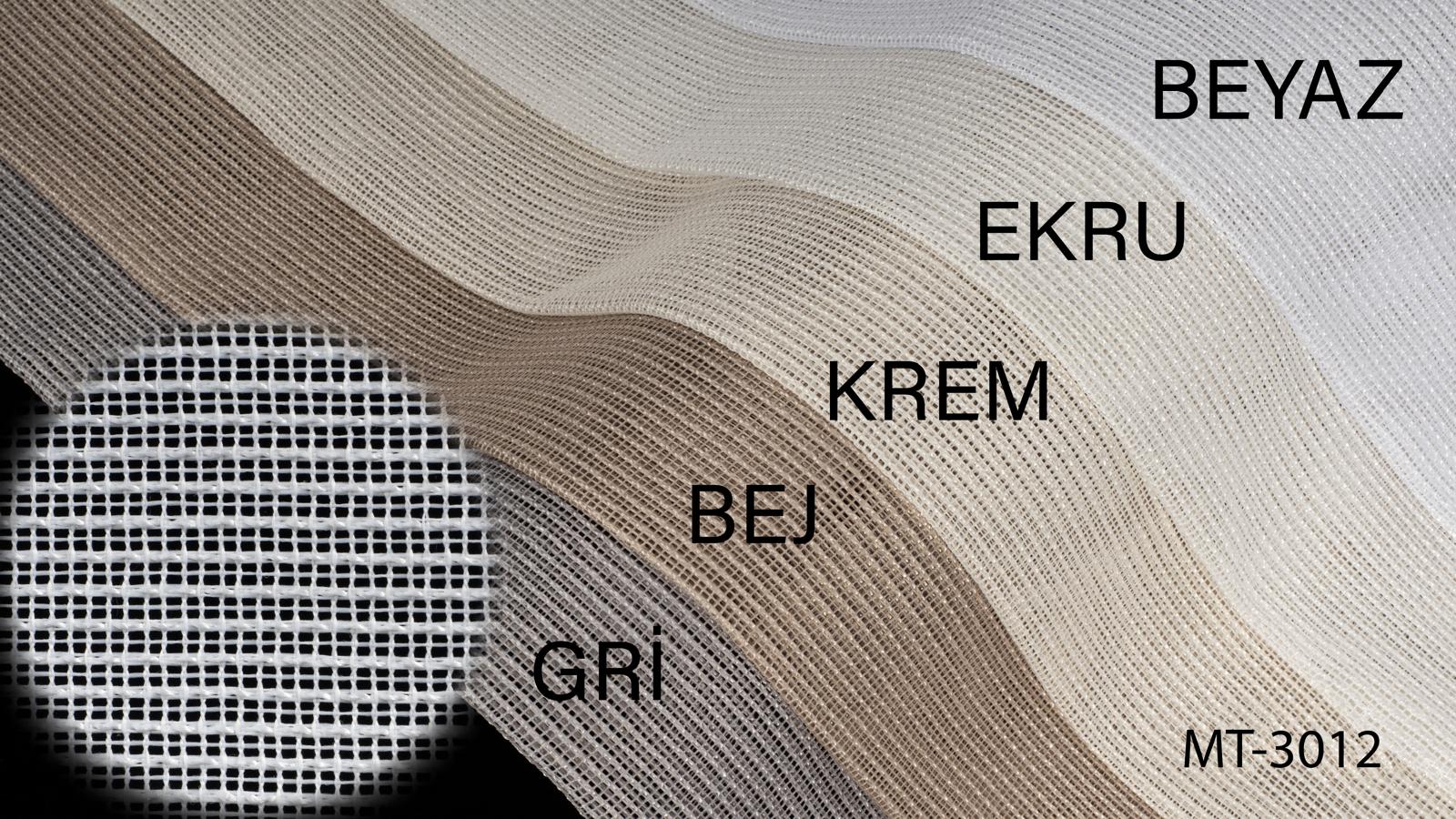 Beyaz, ekru, krem, bej ve gri tonlarıyla hafif dokulu tül kumaş. Ferah bir görünüm sağlar.