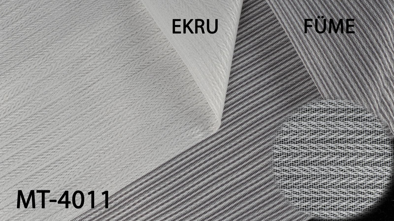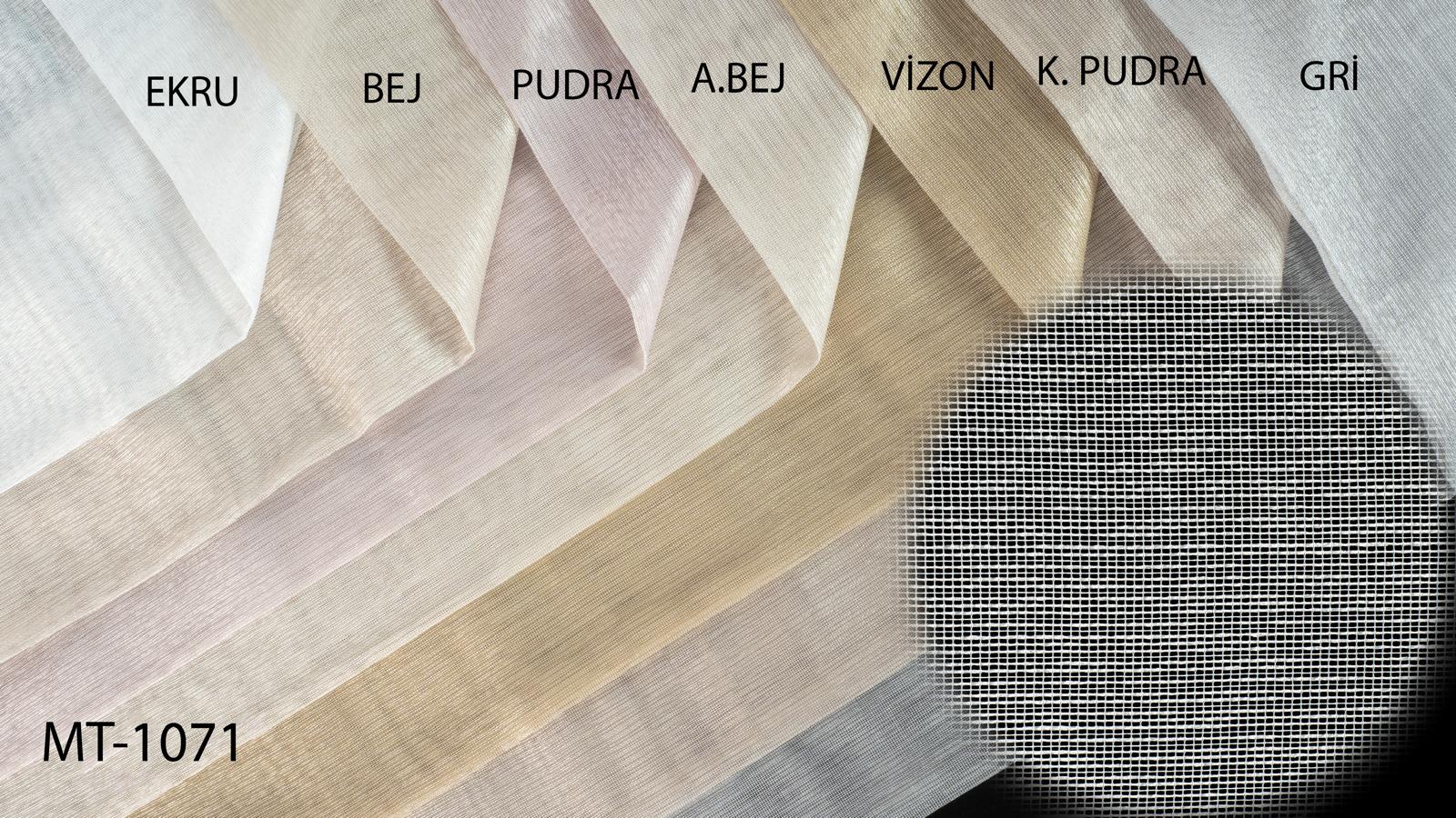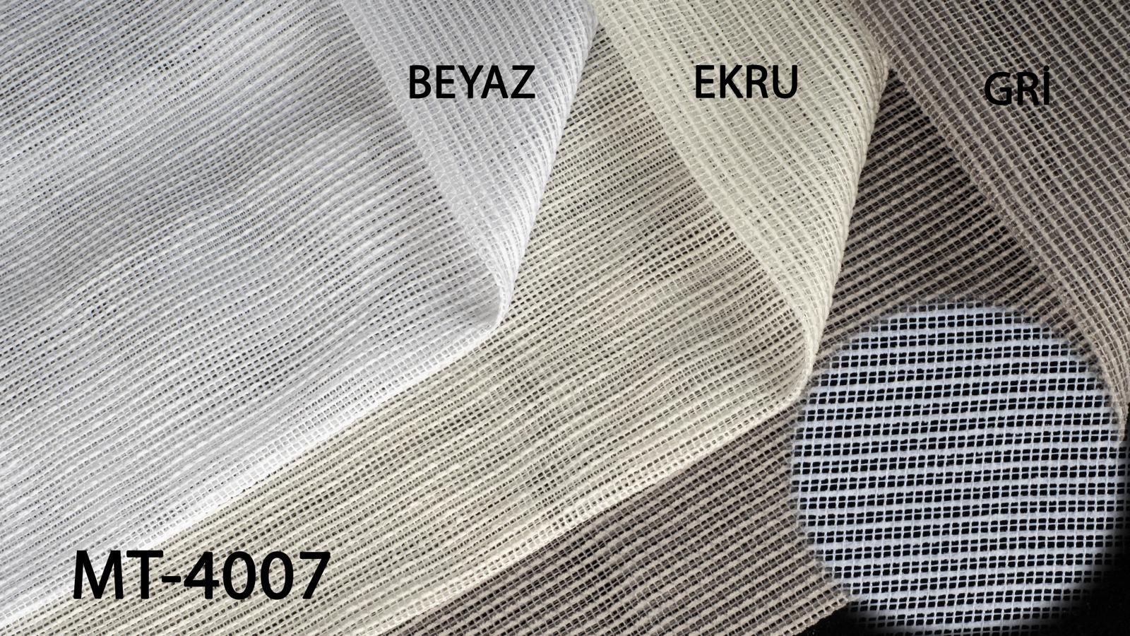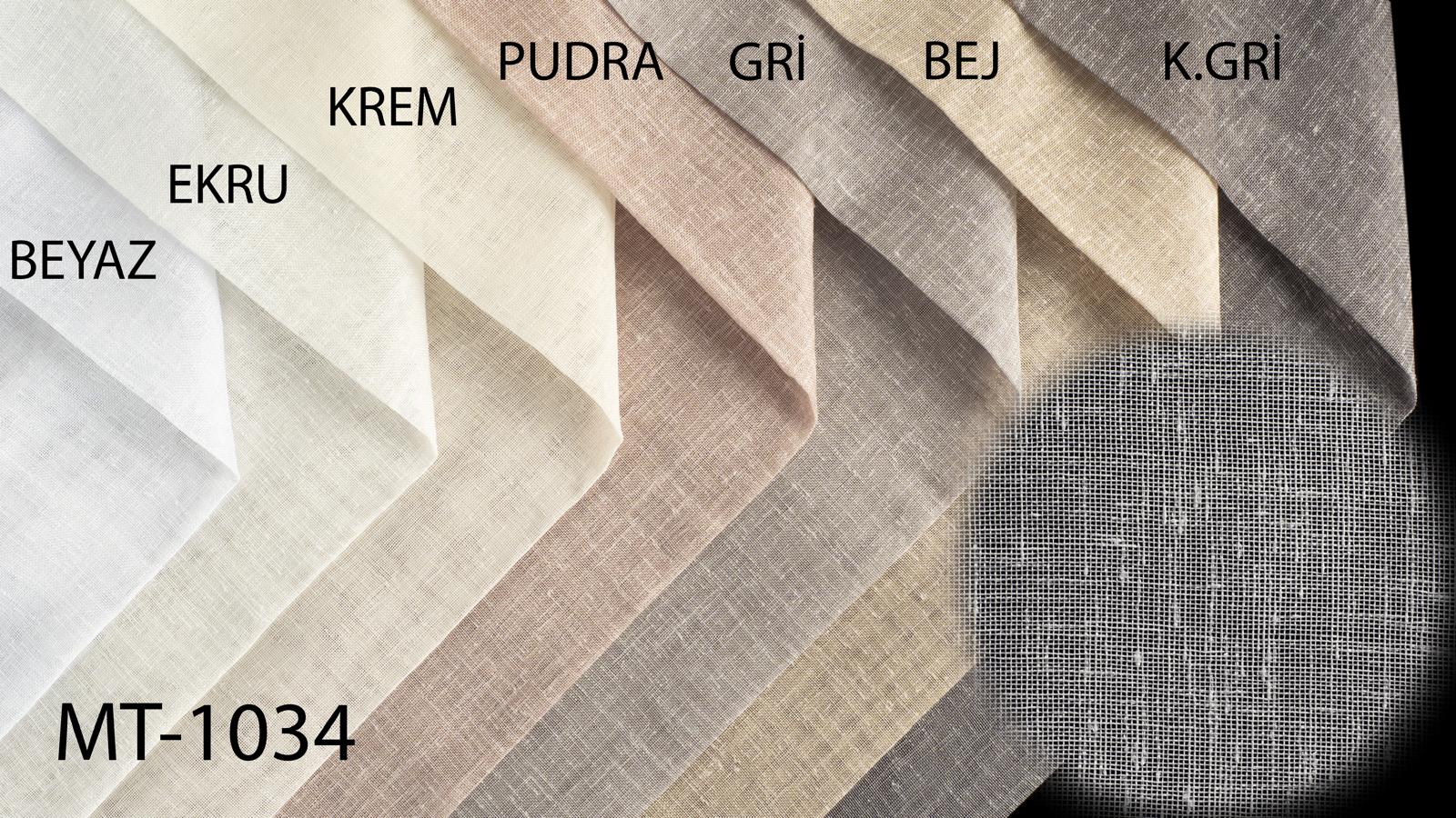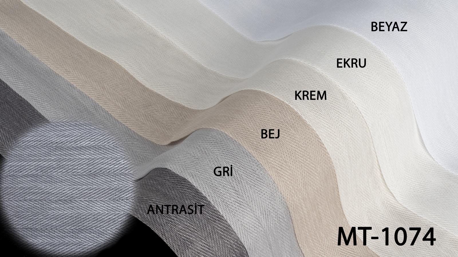 Beyaz, ekru, krem, bej ve gri tonlarıyla hafif dokulu tül kumaş. Ferah bir görünüm sağlar.
