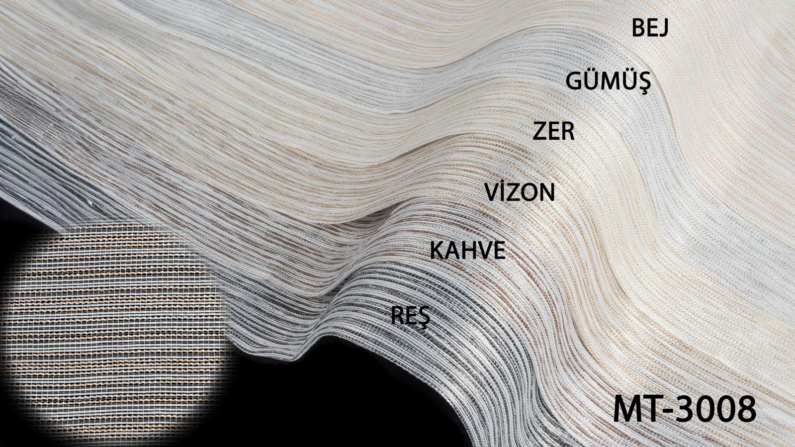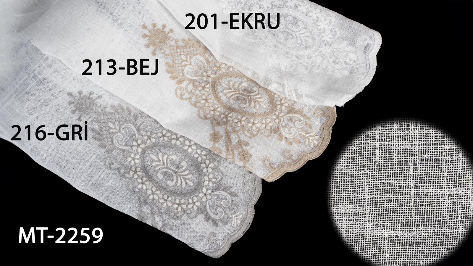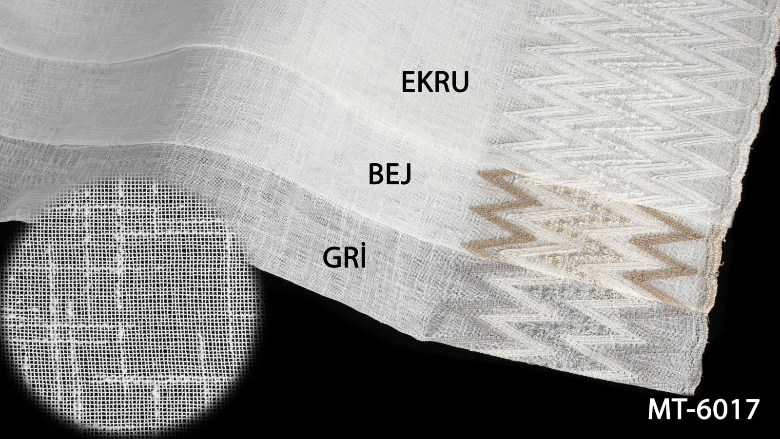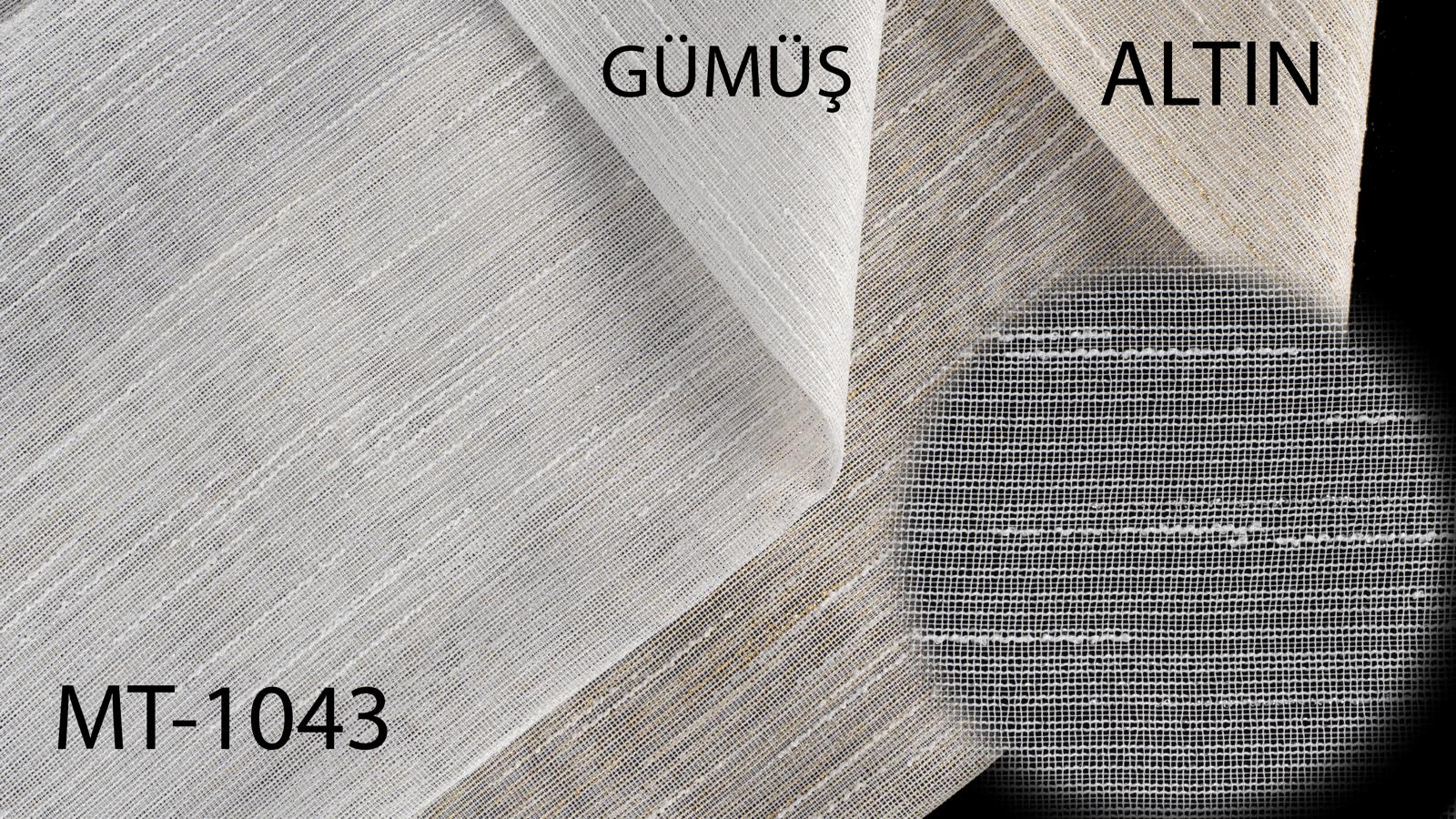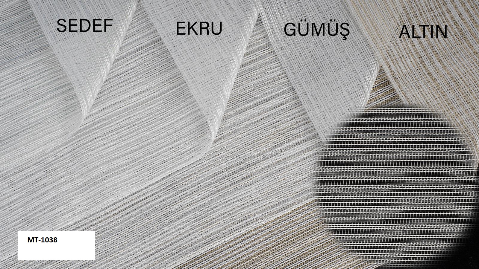 Beyaz, ekru, krem, bej ve gri tonlarıyla hafif dokulu tül kumaş. Ferah bir görünüm sağlar.