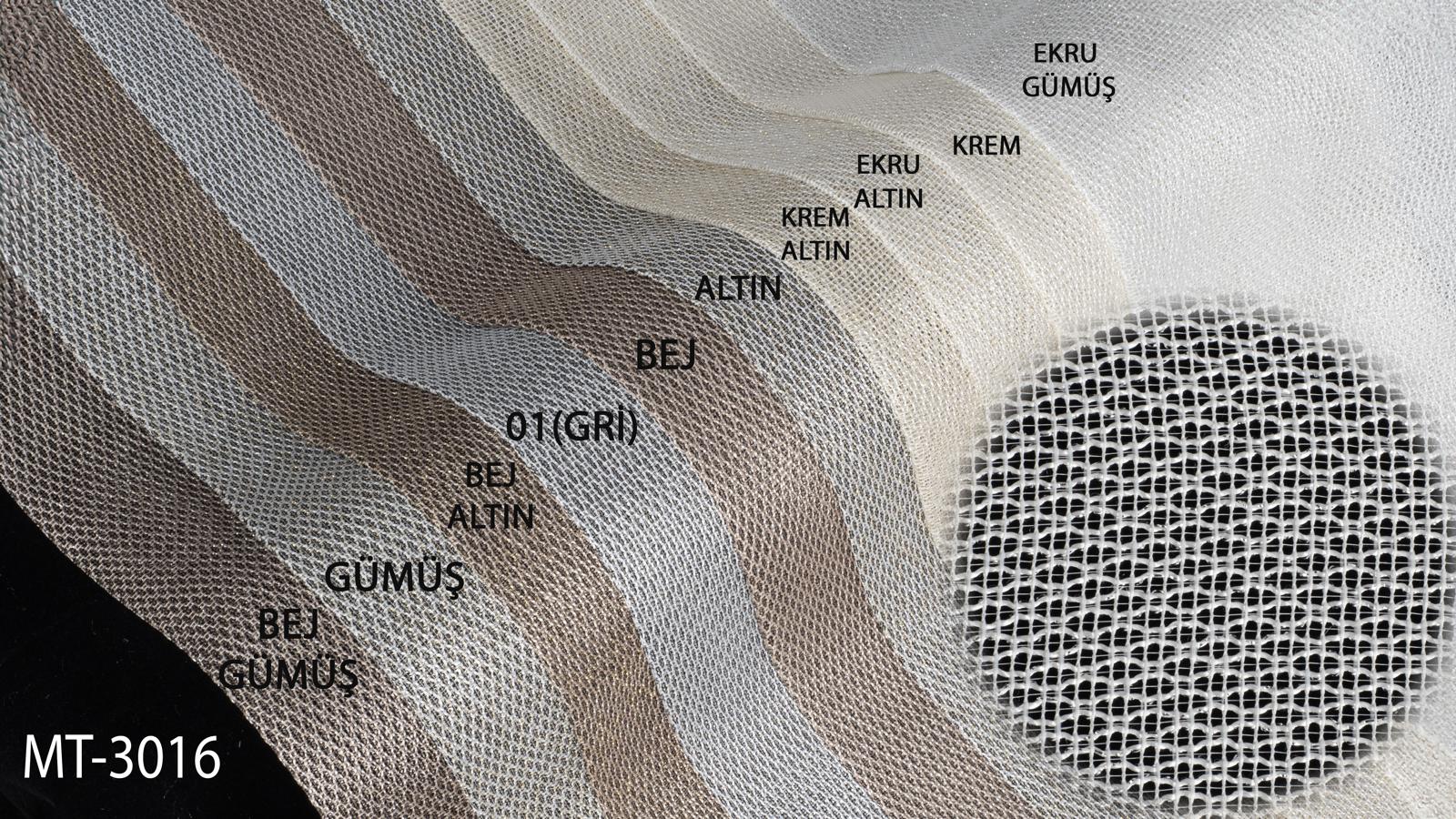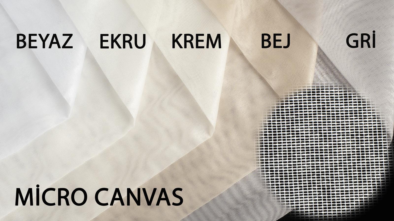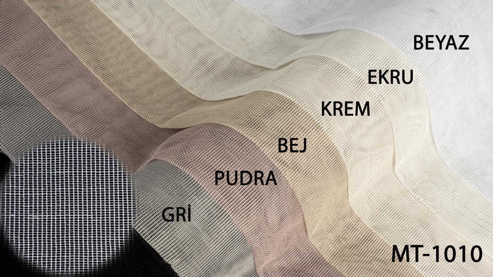 Beyaz, ekru, krem, bej ve gri renkleriyle tok dokulu, dayanıklı tül kumaş. Fonluk olarak da kullanılabilir.