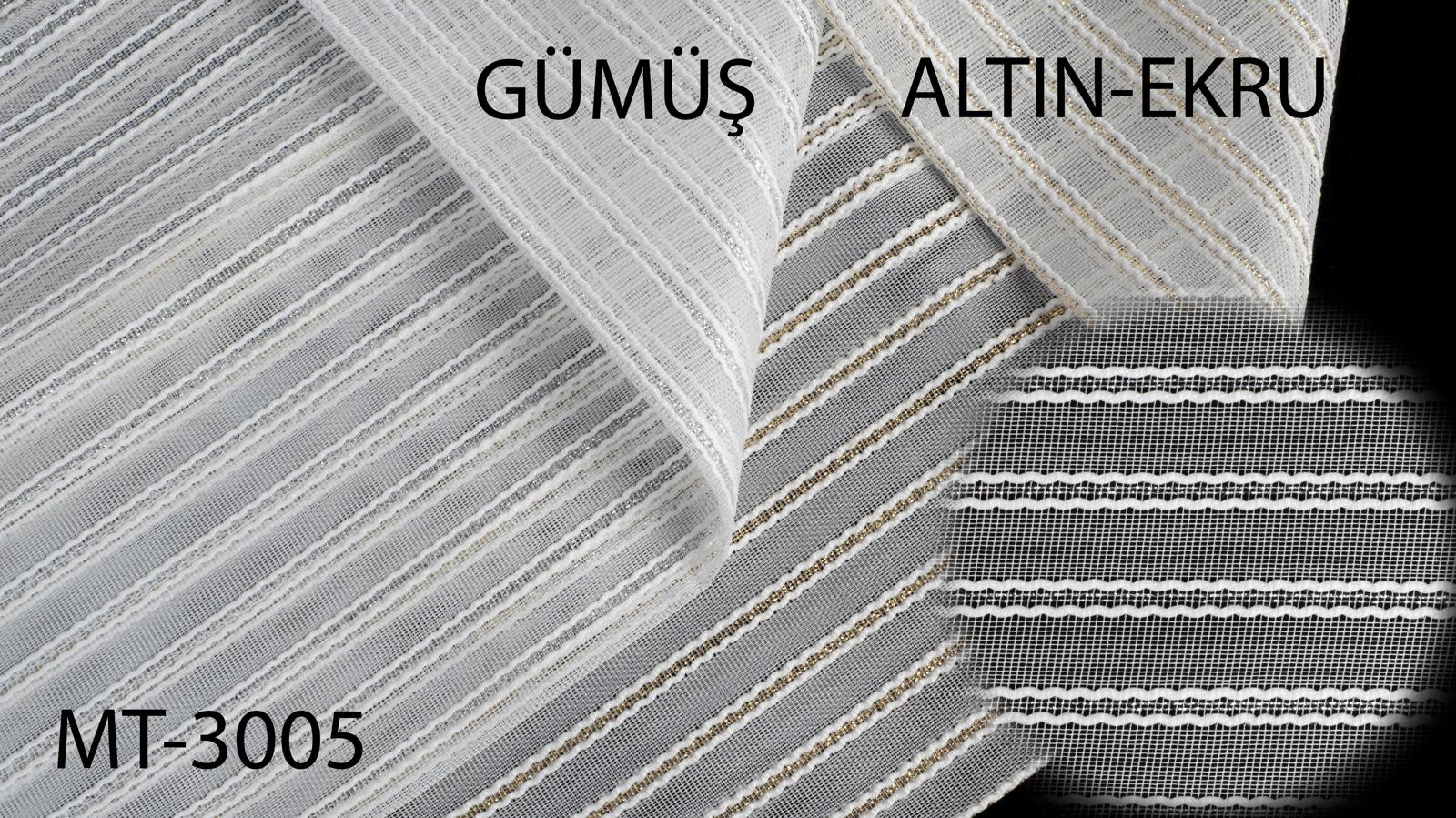 Metalik ışıltılı çizgili modern tül. Işığı güzel kırar ve odalara ferahlık verir.